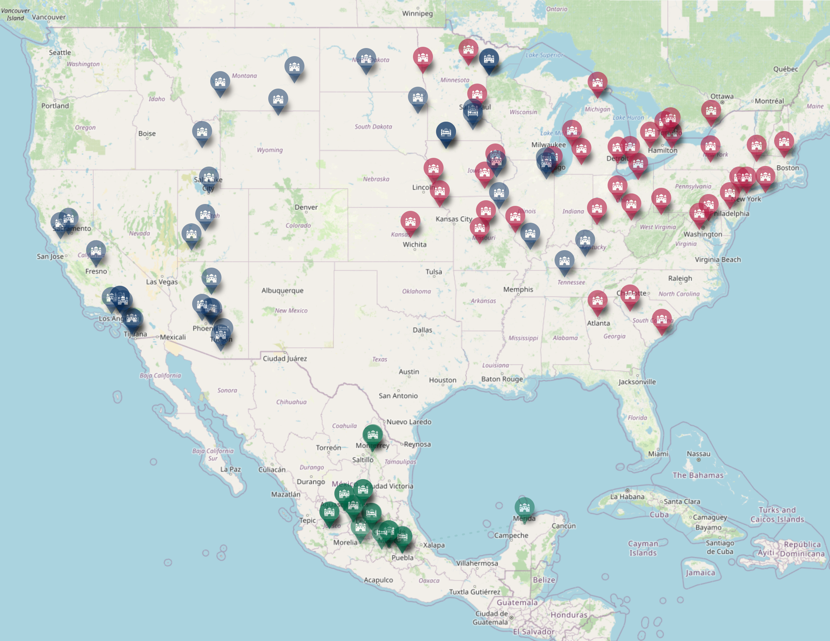 Und noch zwei weniger aufregende Bildschirmaufnahmen die ich auch jetzt in den letzten Tagen während der Planung gemacht habe: Einmal statt Fußballfelder - was sonst das gängige Mittel zu nachvollziehbaren Größenangabe wäre (square-miles oder Quadratkilometer, wtf) - Österreichs ROT-WEIß-ROT. Und auch noch ganz interessant, die Orte in Nordamerika wo ich mit der Rasselbande vor 15 bzw 16 Jahren (sorry, hab mich da im vorletzten Beitrag mit den 17 Jahren vertan) also 2009 und 2010 überall gewesen bin. Hier die ganze Karte, Alemania und Japón fehlen allerdings (noch).