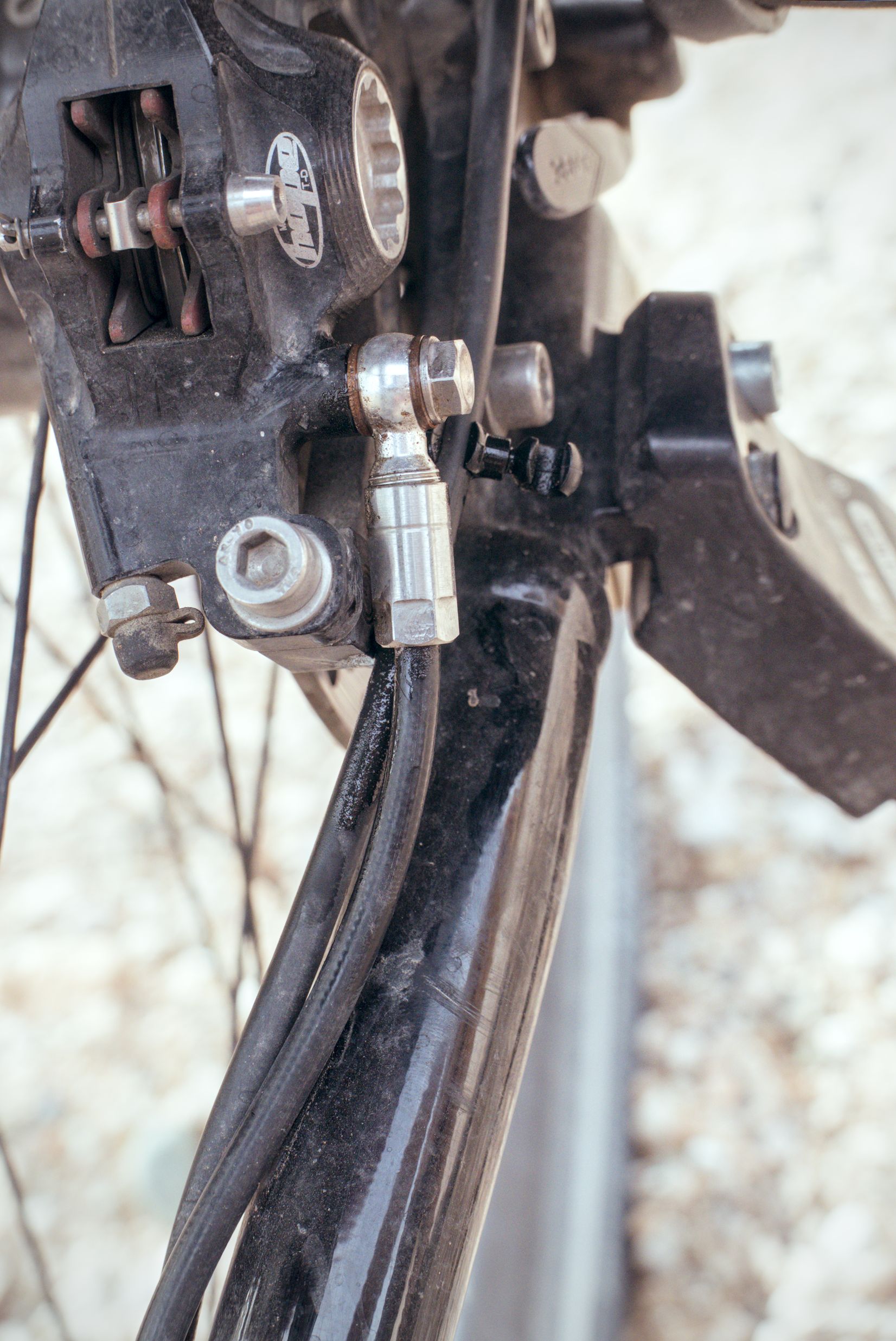 Immer wieder hab ich mir gedacht ob das das Fahrrad überhaupt aushält. Etwa 24 h später hab ich die Antwort: Hydraulikleitung am Bremssattel saft'elt. Eines von den paar wenigen Teilen am Rad wo ich mich nicht wirklich auskenne und ich einfach gehofft habe, dass es nicht kaputt geht. Ironischerweise heißt die Marke von den Bremsen Hope. Zuerst habe ich gehofft, dass es nur an dem Gerumpel vom Vortag lag und sie jetzt eh wieder dicht ist aber leider nein, auch 48 h später tritt noch Öl aus. Glück im Unglück im Glück, in der etwas größeren Stadt St. George, Utah in der ich gerade eingefahren bin gibt es einige Radgeschäfte und momentan warte ich darauf dass es repariert wird und dann hoffentlich für die nächsten 25.000 km eine Ruh' ist.